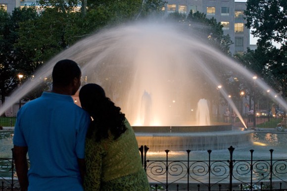 And emanating from the corners of the historic park, four new herringbone brick walking paths with nighttime lighting bring even more charm to the Square after dark. The paths lead to the centerpiece of the Square, the Franklin Square Fountain, a marble masterpiece built in 1838 surrounded by wrought iron fences, which is currently still going under cosmetic restoration.